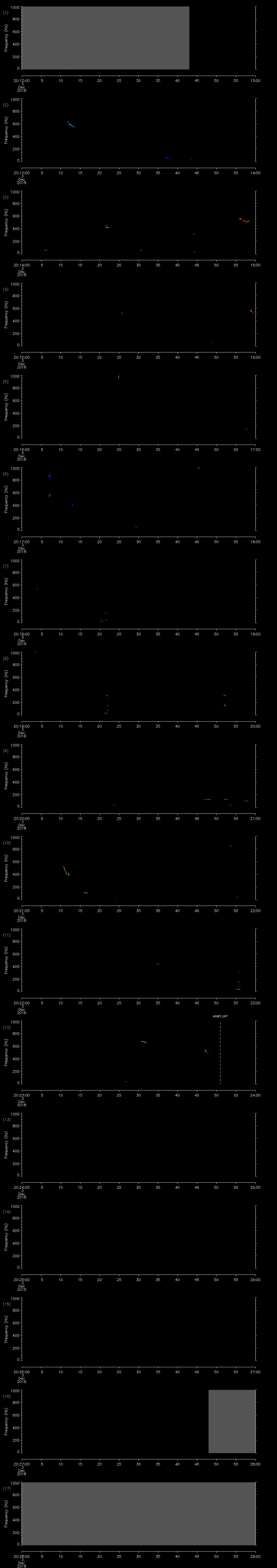 - MUTEON: the hydrophone is muted to assess system noise and to provide a time mark in the audio recording