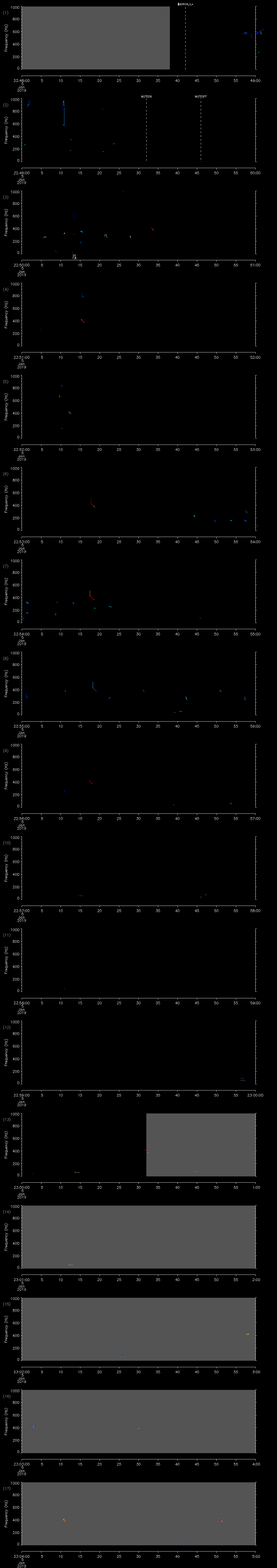 - MUTEON: the hydrophone is muted to assess system noise and to provide a time mark in the audio recording
