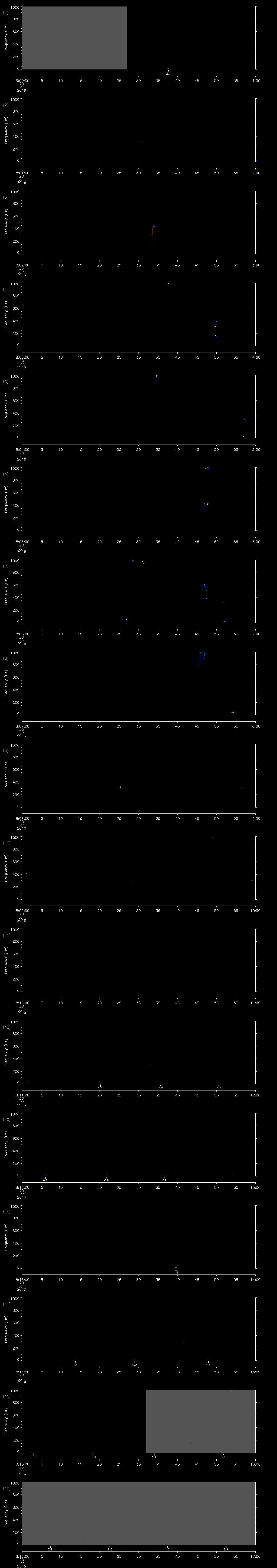 | Date/time | Sei whale | Fin whale | Right whale | Humpback whale | Other | Duration |