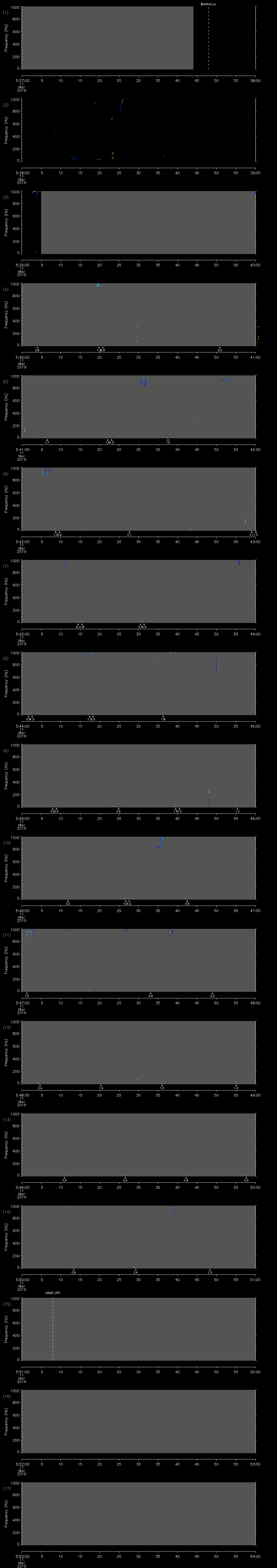- MUTEON: the hydrophone is muted to assess system noise and to provide a time mark in the audio recording