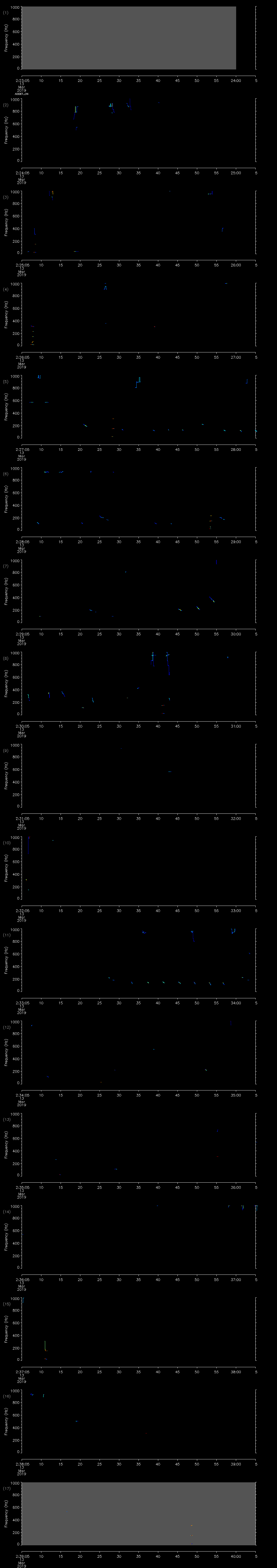 | Date/time | Sei whale | Fin whale | Right whale | Humpback whale | Other | Duration |