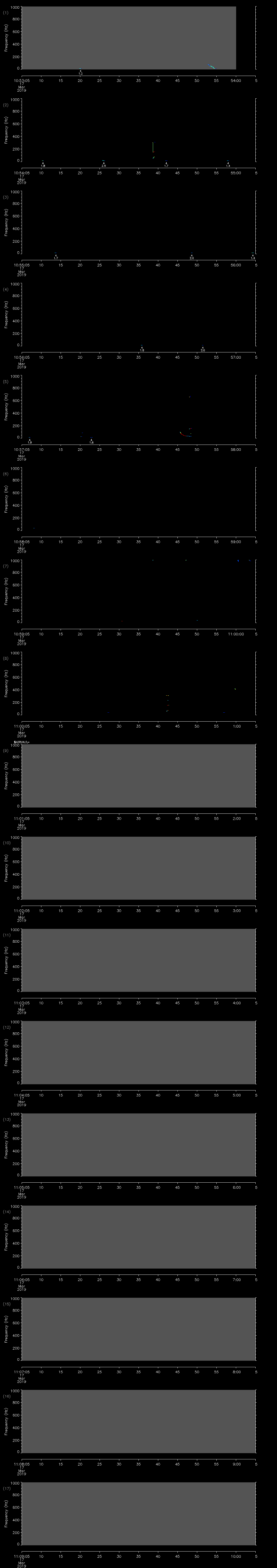 | Date/time | Sei whale | Fin whale | Right whale | Humpback whale | Other | Duration |