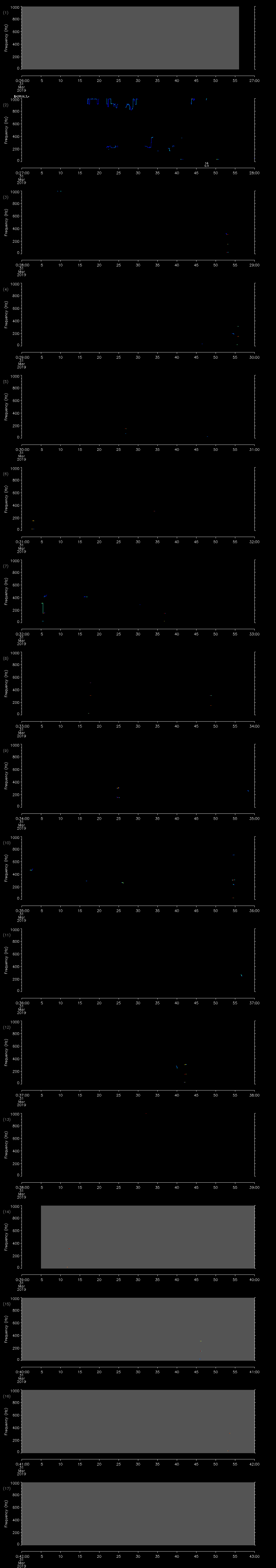 | Date/time | Sei whale | Fin whale | Right whale | Humpback whale | Other | Duration |