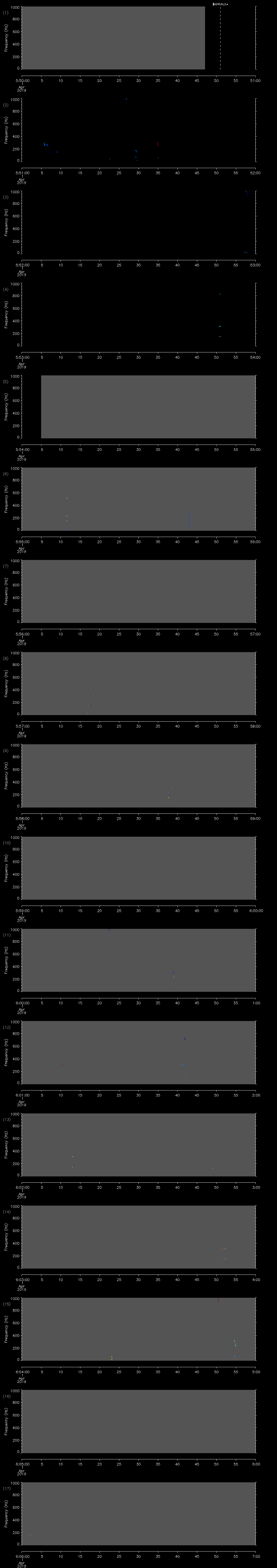 | Date/time | Sei whale | Fin whale | Right whale | Humpback whale | Other | Duration |