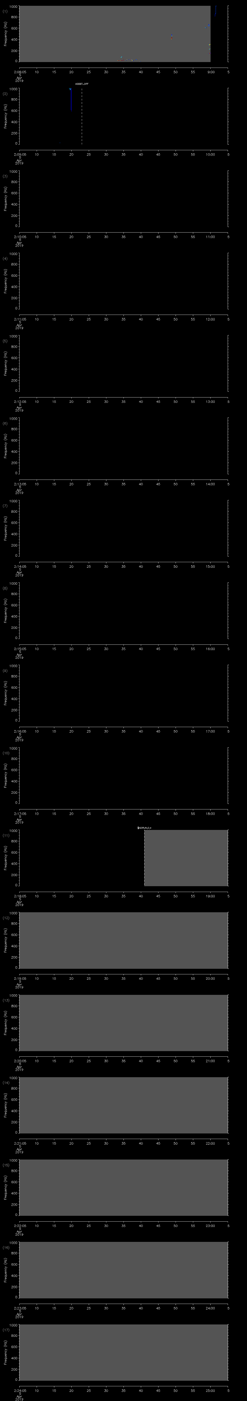 - MUTEON: the hydrophone is muted to assess system noise and to provide a time mark in the audio recording