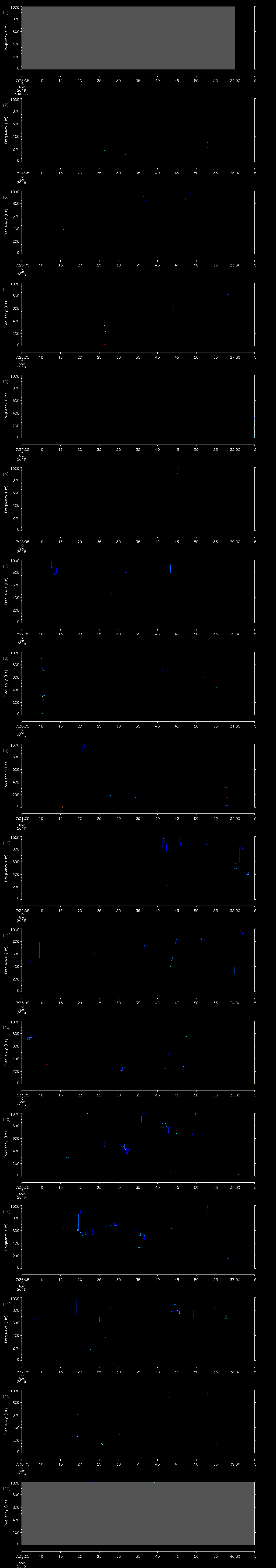 | Date/time | Sei whale | Fin whale | Right whale | Humpback whale | Other | Duration |