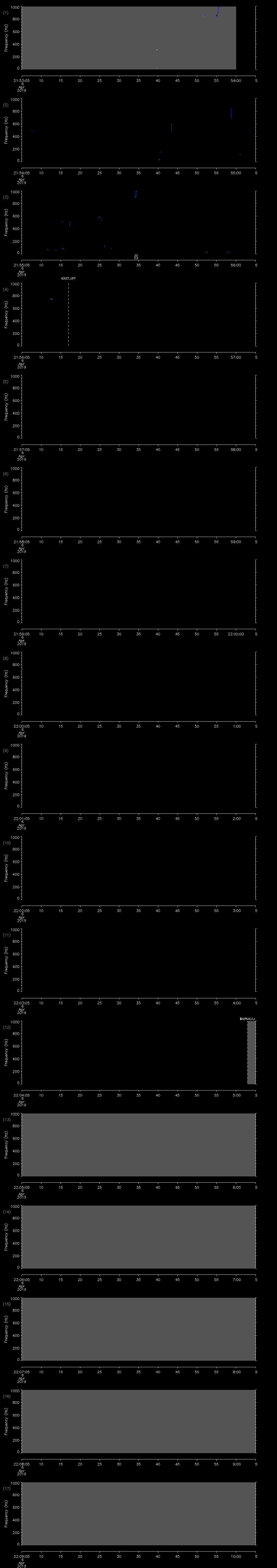- MUTEON: the hydrophone is muted to assess system noise and to provide a time mark in the audio recording