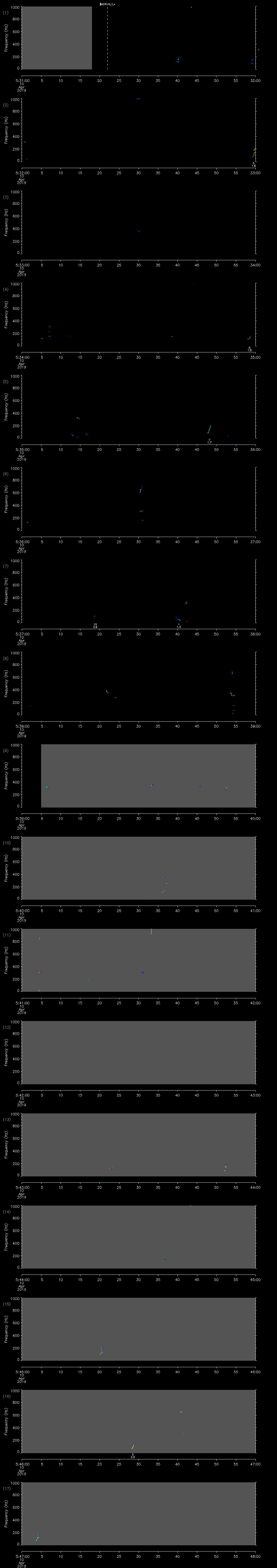 | Date/time | Sei whale | Fin whale | Right whale | Humpback whale | Other | Duration |