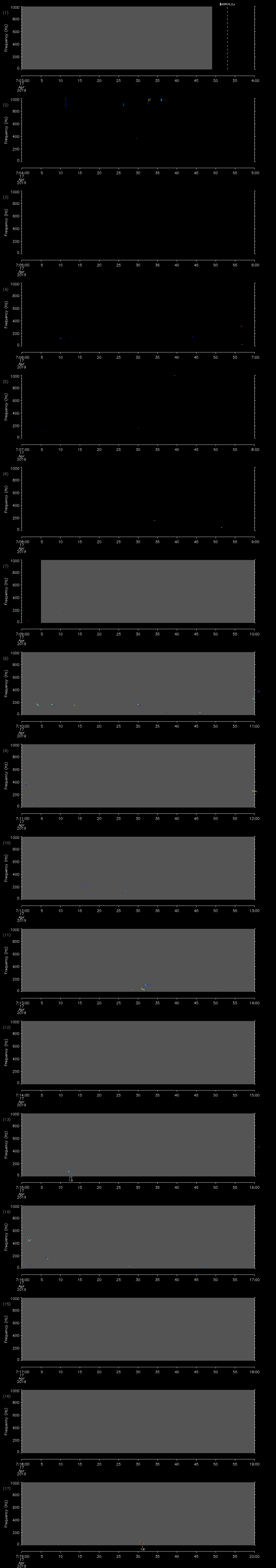| Date/time | Sei whale | Fin whale | Right whale | Humpback whale | Other | Duration |