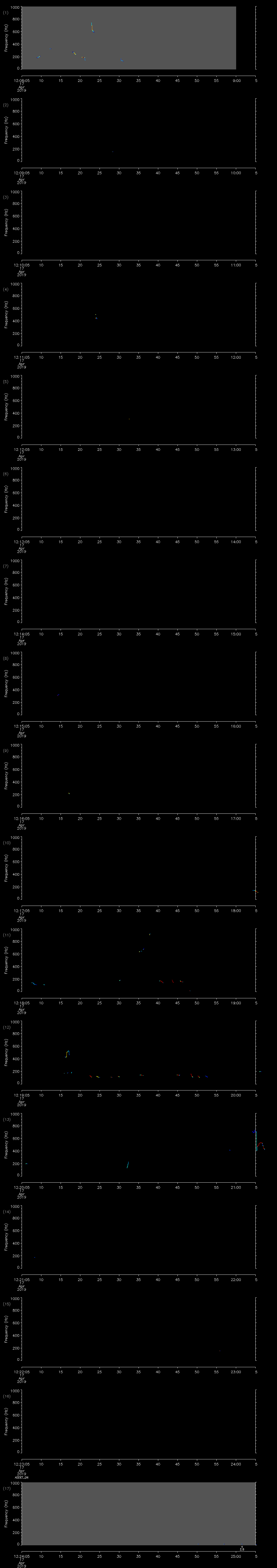 | Date/time | Sei whale | Fin whale | Right whale | Humpback whale | Other | Duration |