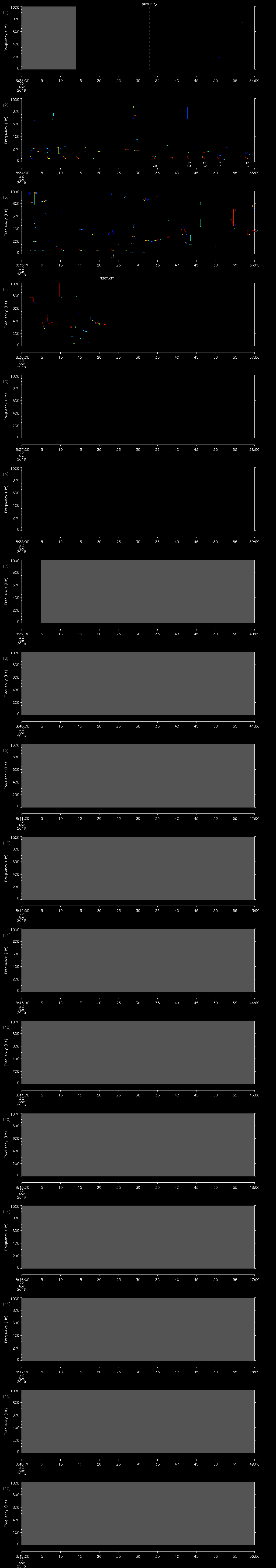 - MUTEON: the hydrophone is muted to assess system noise and to provide a time mark in the audio recording