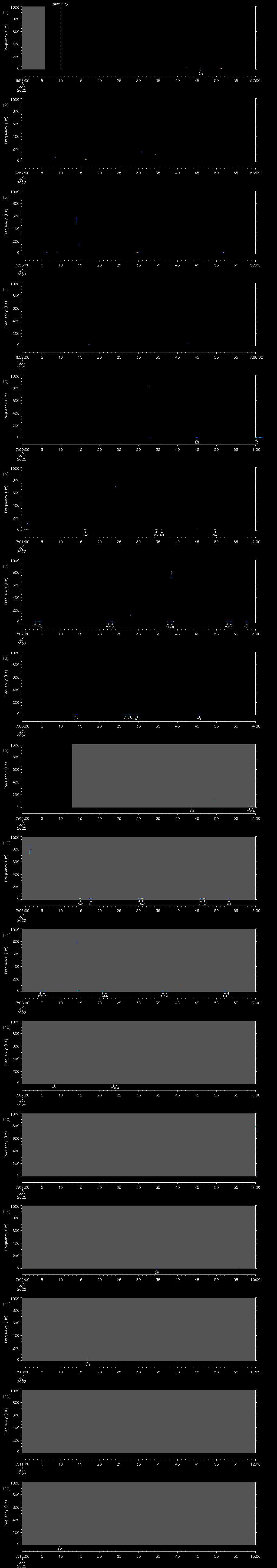 | Date/time | Sei whale | Fin whale | Right whale | Humpback whale | Other | Duration |