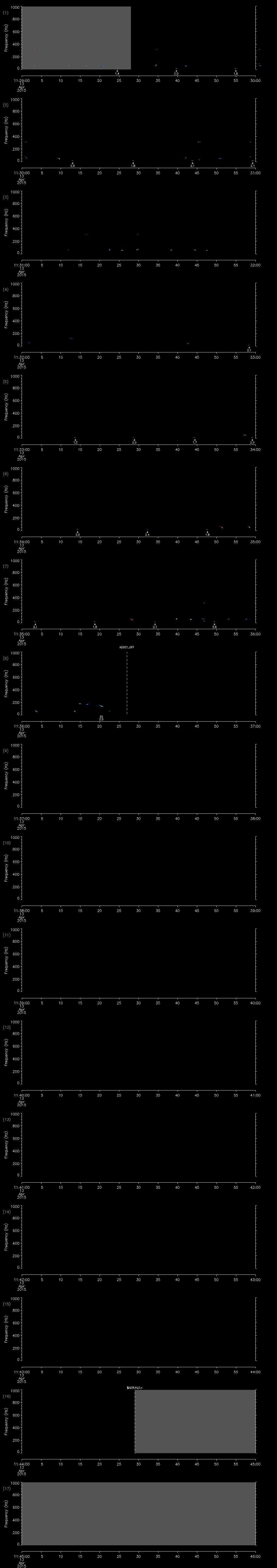 - MUTEON: the hydrophone is muted to assess system noise and to provide a time mark in the audio recording