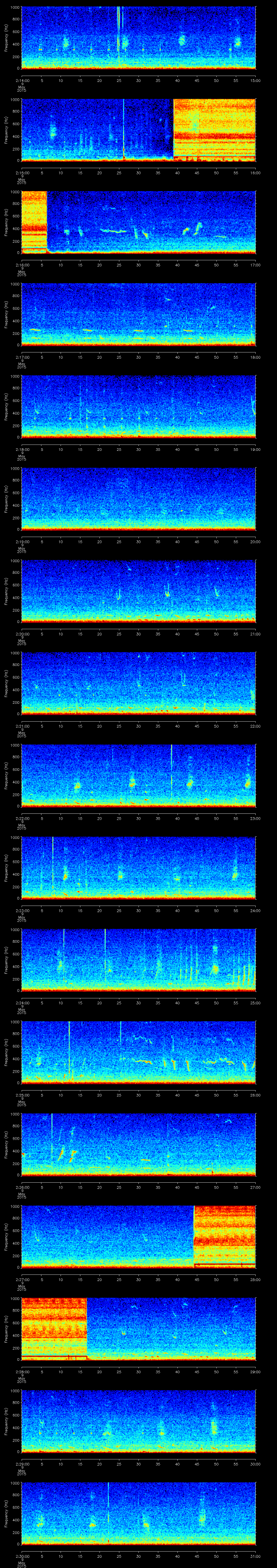 | Date/time | Sei whale | Fin whale | Right whale | Humpback whale | Other | Duration |