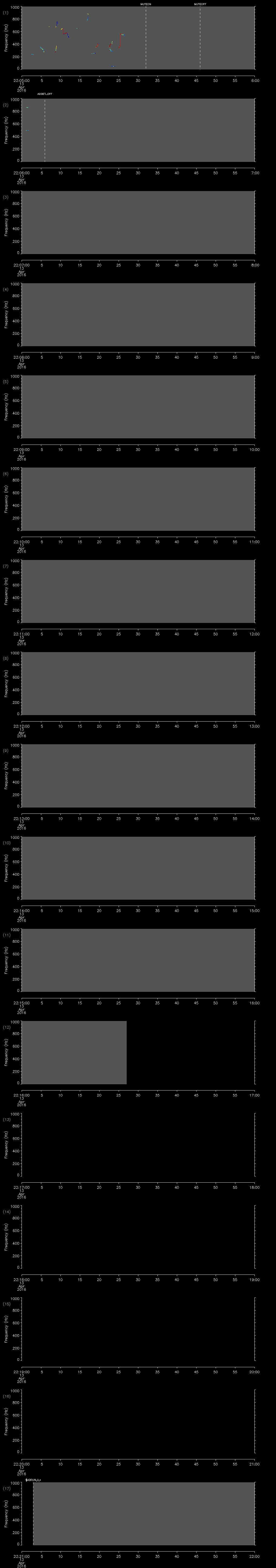 - MUTEON: the hydrophone is muted to assess system noise and to provide a time mark in the audio recording