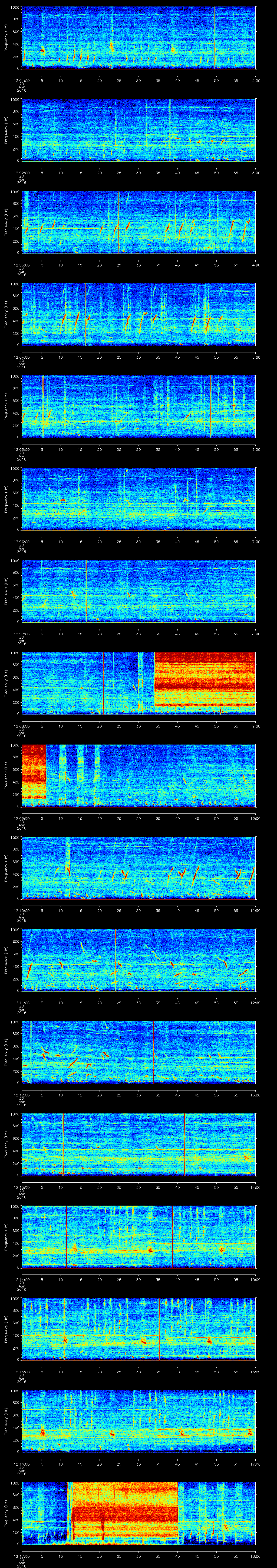 | Date/time | Sei whale | Fin whale | Right whale | Humpback whale | Other | Duration |