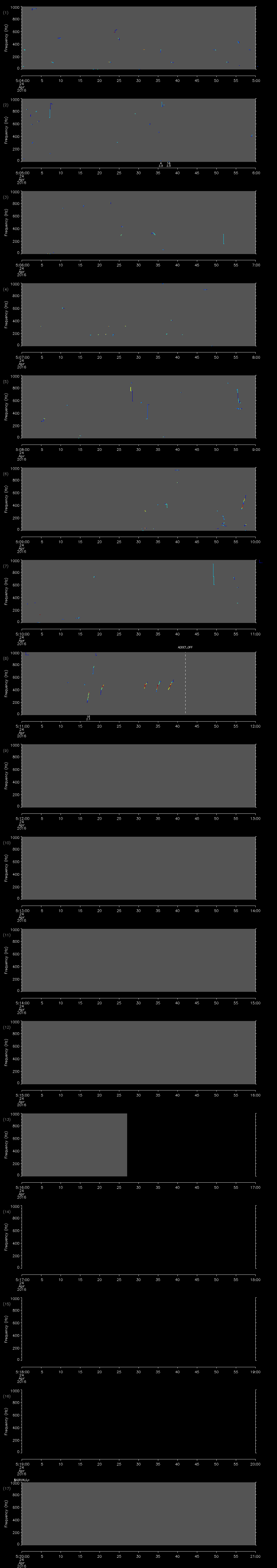 - MUTEON: the hydrophone is muted to assess system noise and to provide a time mark in the audio recording