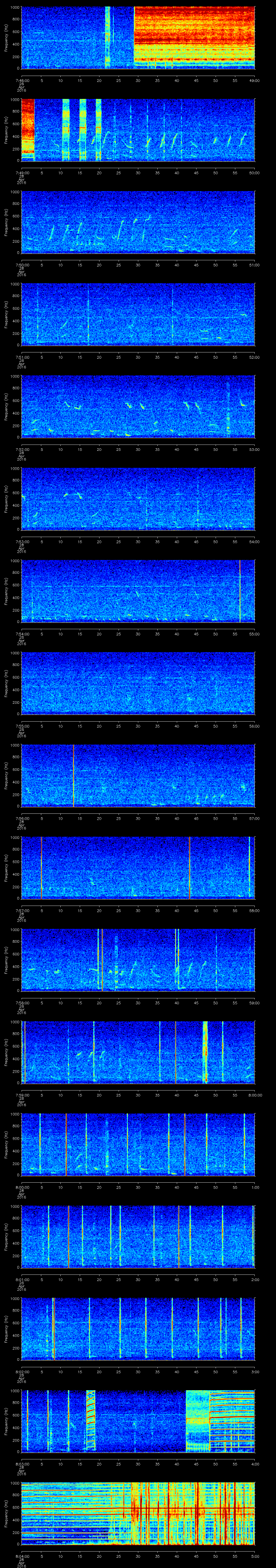| Date/time | Sei whale | Fin whale | Right whale | Humpback whale | Other | Duration |