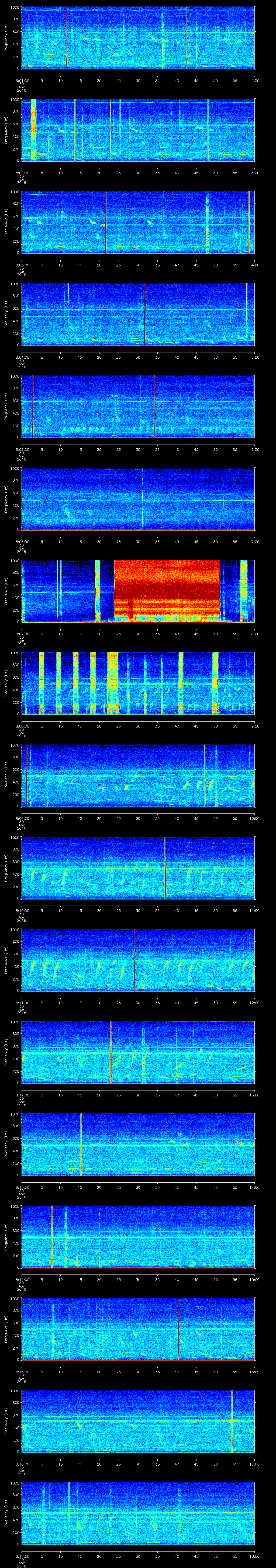 | Date/time | Sei whale | Fin whale | Right whale | Humpback whale | Other | Duration |