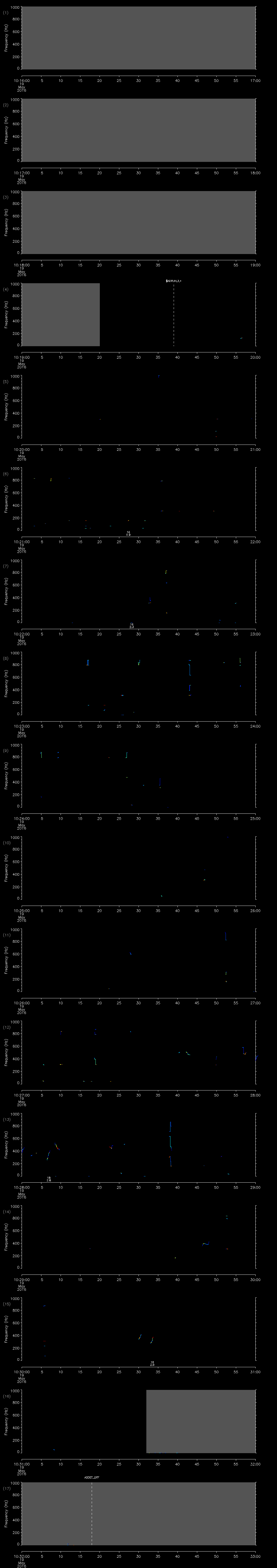 - MUTEON: the hydrophone is muted to assess system noise and to provide a time mark in the audio recording