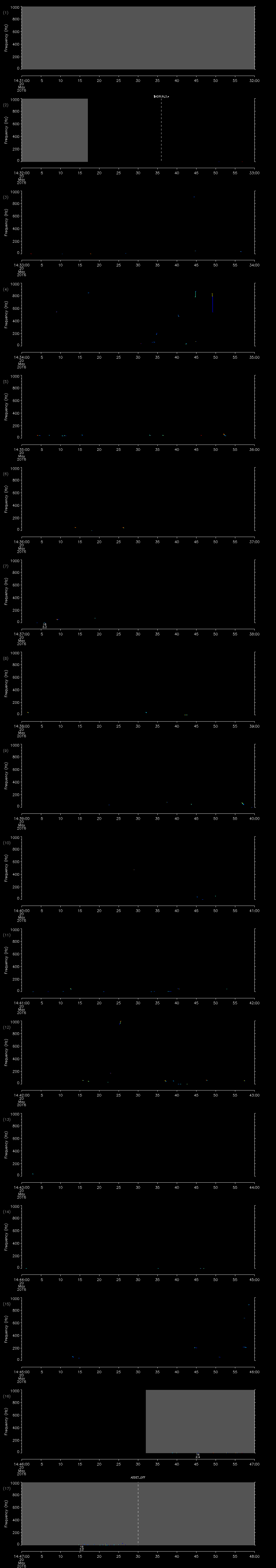 - MUTEON: the hydrophone is muted to assess system noise and to provide a time mark in the audio recording