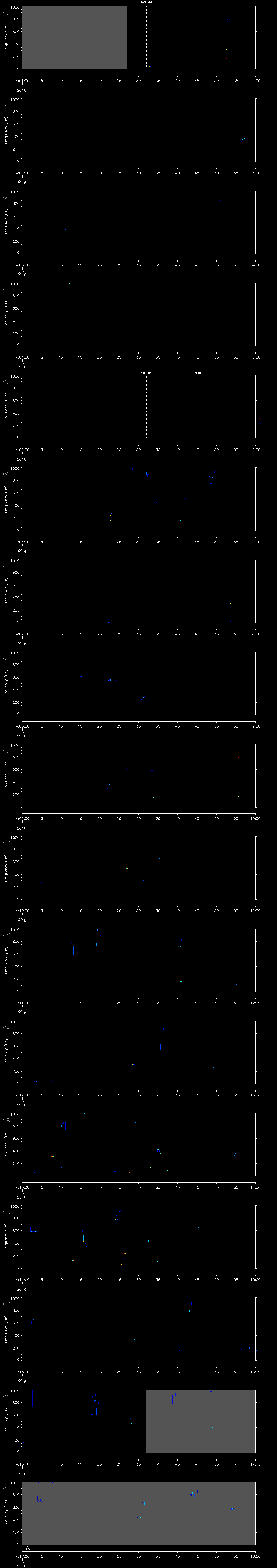 - MUTEON: the hydrophone is muted to assess system noise and to provide a time mark in the audio recording