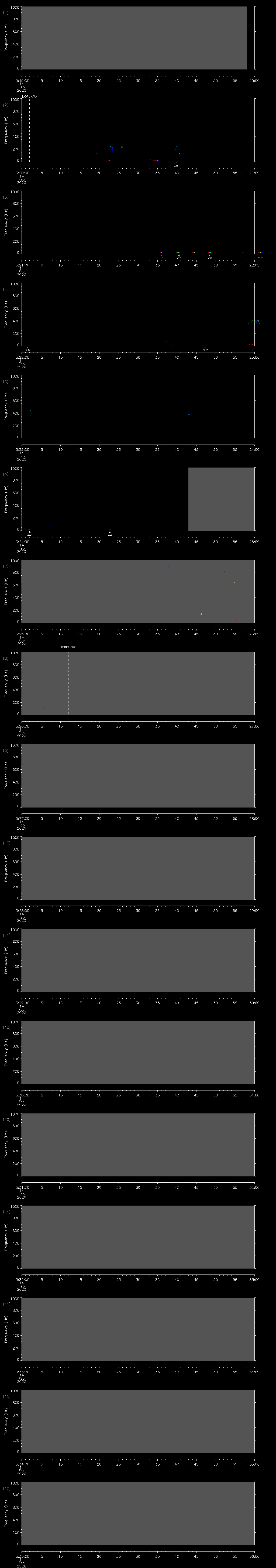 - MUTEON: the hydrophone is muted to assess system noise and to provide a time mark in the audio recording