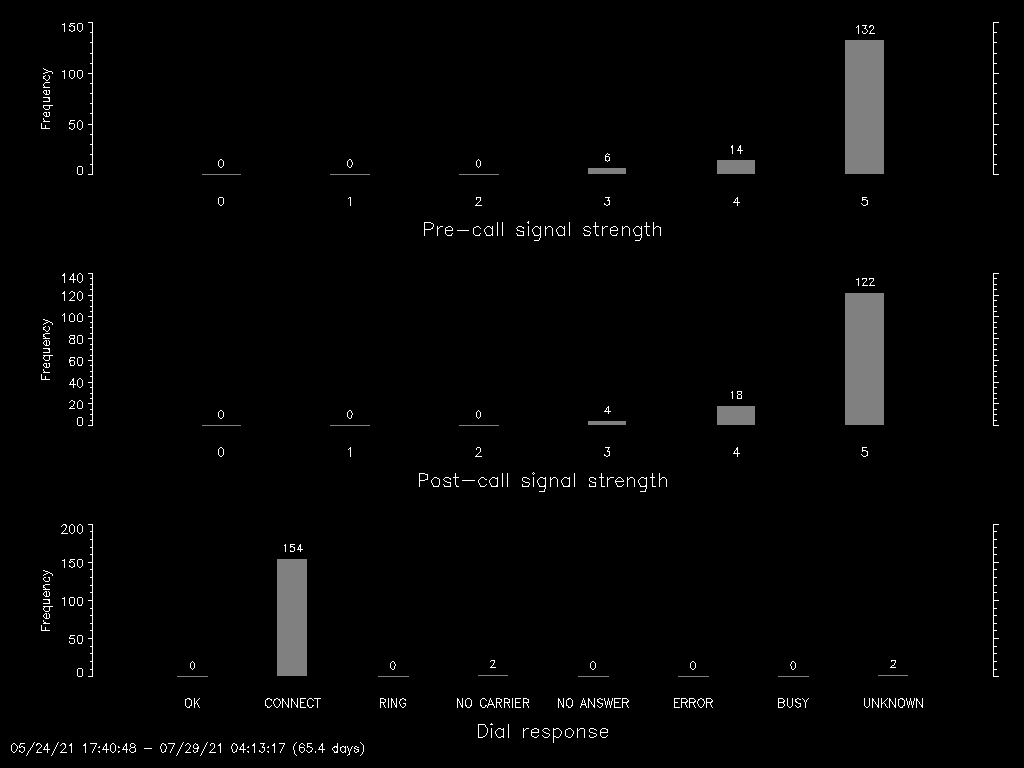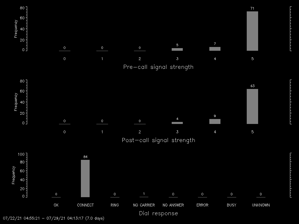 B: Signal strength before dialing (0 - weak, 5 - strong, ? - unknown)