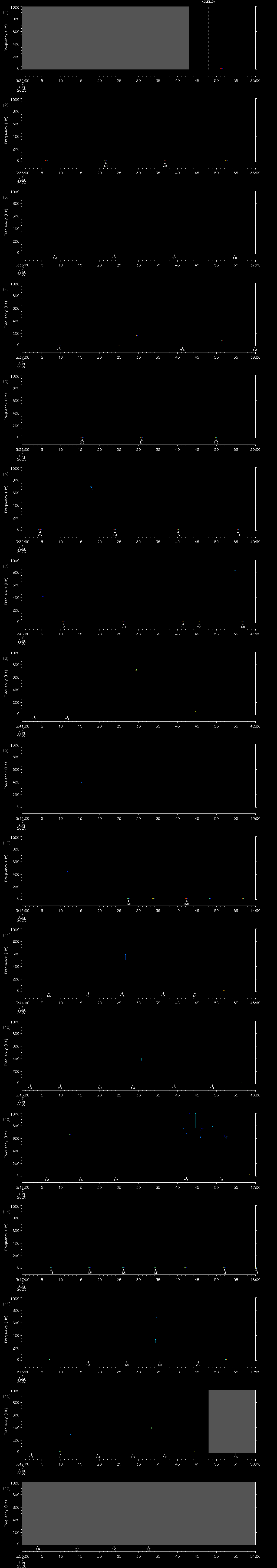 - MUTEON: the hydrophone is muted to assess system noise and to provide a time mark in the audio recording
