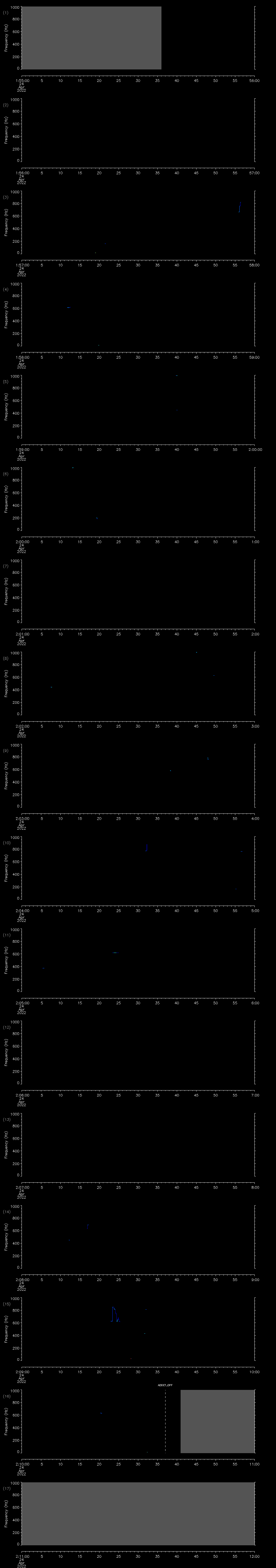 - MUTEON: the hydrophone is muted to assess system noise and to provide a time mark in the audio recording