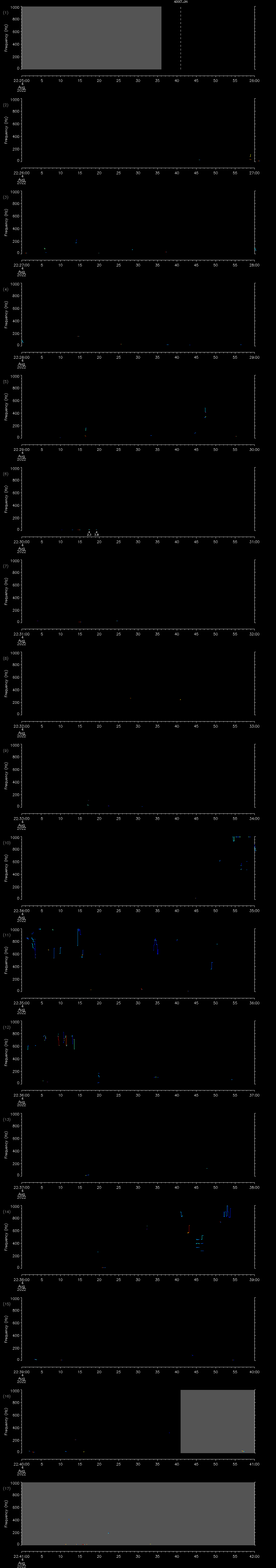 - MUTEON: the hydrophone is muted to assess system noise and to provide a time mark in the audio recording