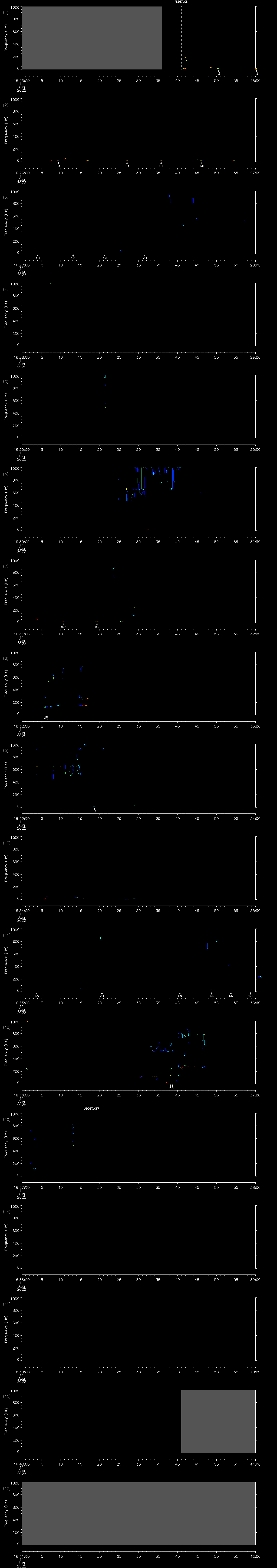 - MUTEON: the hydrophone is muted to assess system noise and to provide a time mark in the audio recording