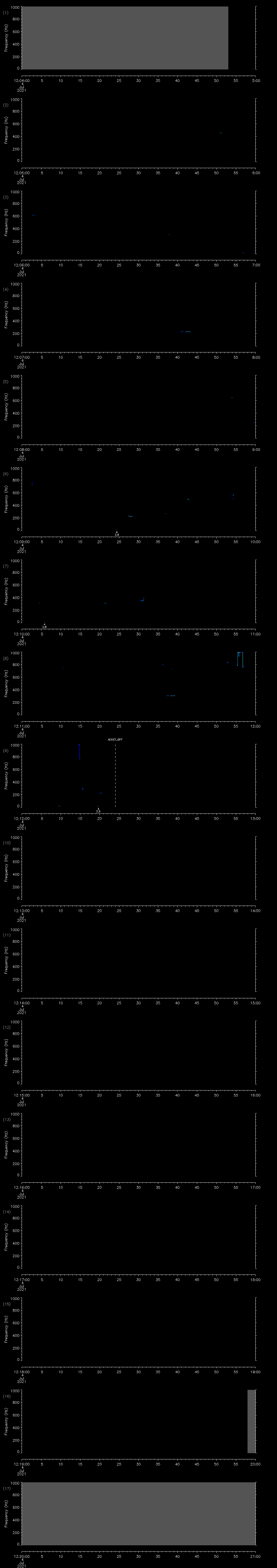 - MUTEON: the hydrophone is muted to assess system noise and to provide a time mark in the audio recording