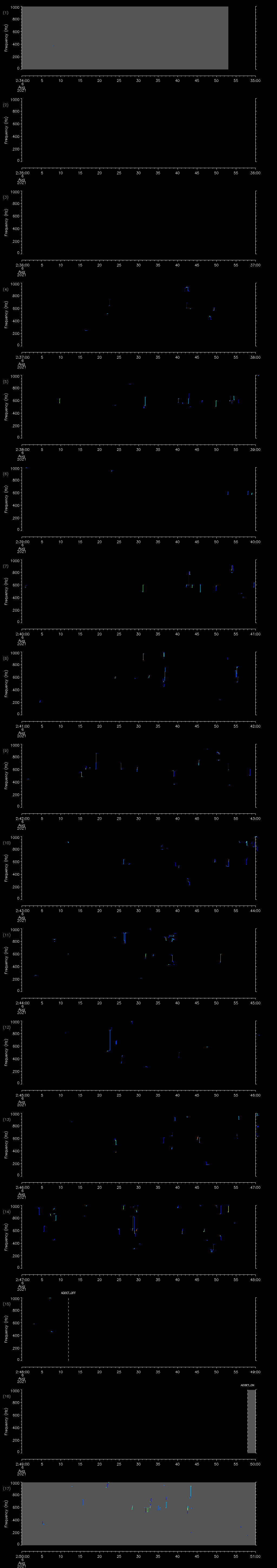 - MUTEON: the hydrophone is muted to assess system noise and to provide a time mark in the audio recording