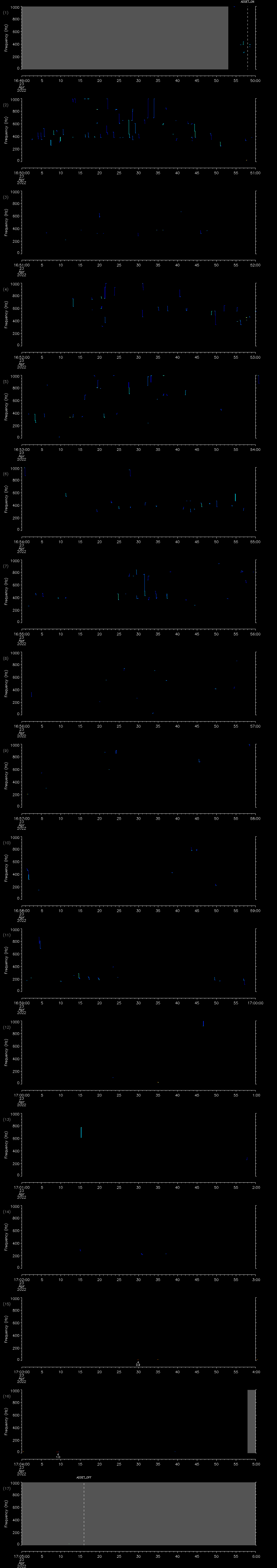 - MUTEON: the hydrophone is muted to assess system noise and to provide a time mark in the audio recording