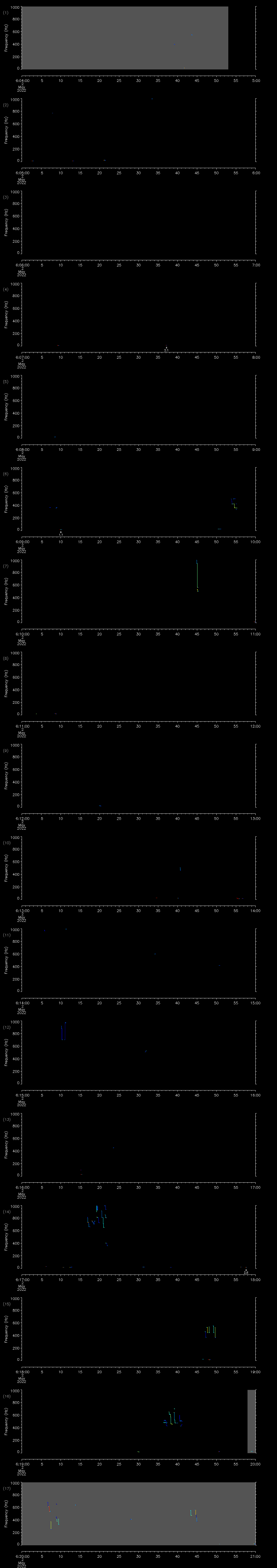| Date/time | Sei whale | Fin whale | Right whale | Humpback whale | Other | Duration |