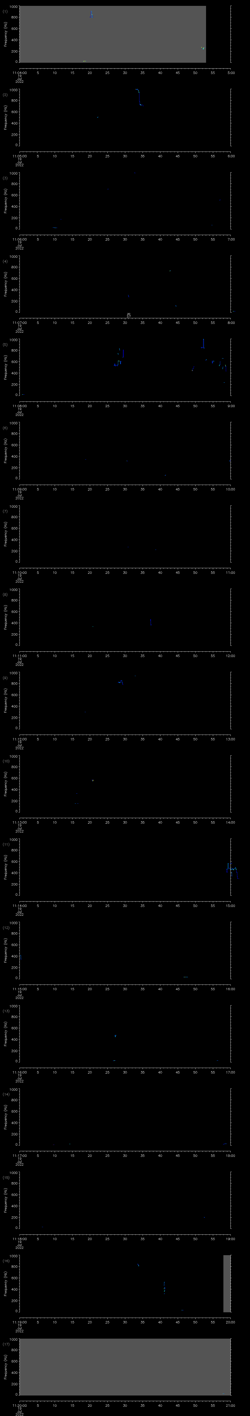 | Date/time | Sei whale | Fin whale | Right whale | Humpback whale | Other | Duration |