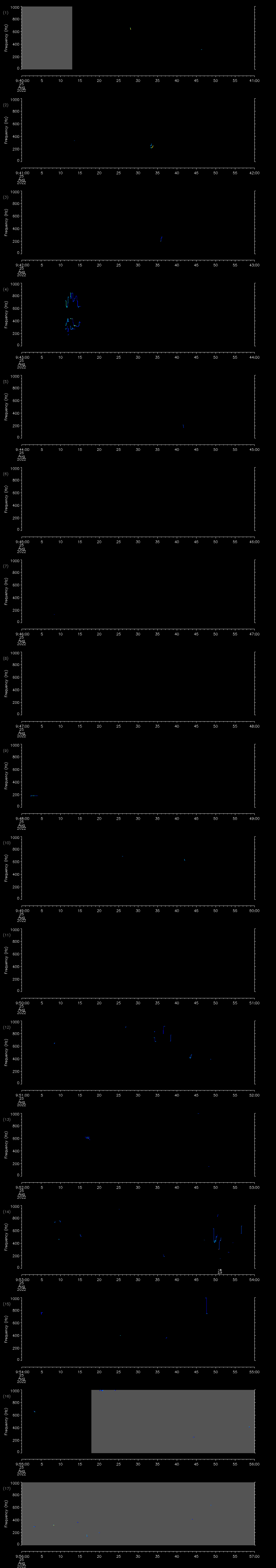 | Date/time | Sei whale | Fin whale | Right whale | Humpback whale | Other | Duration |
