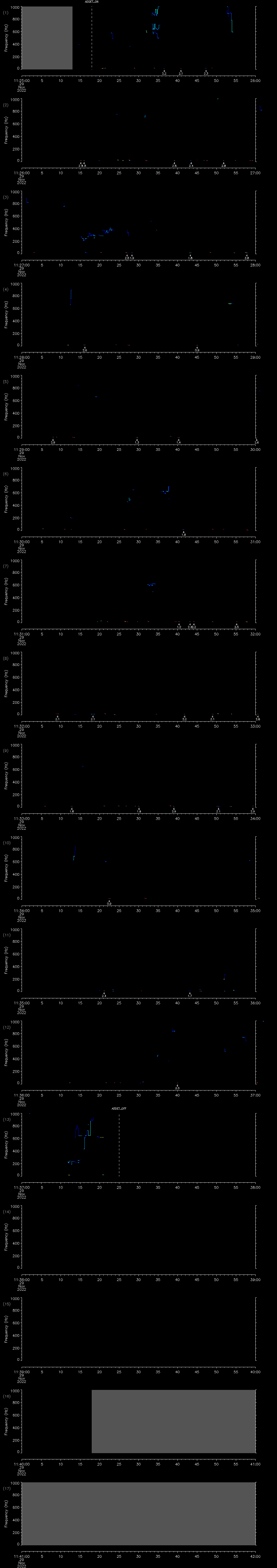 - MUTEON: the hydrophone is muted to assess system noise and to provide a time mark in the audio recording