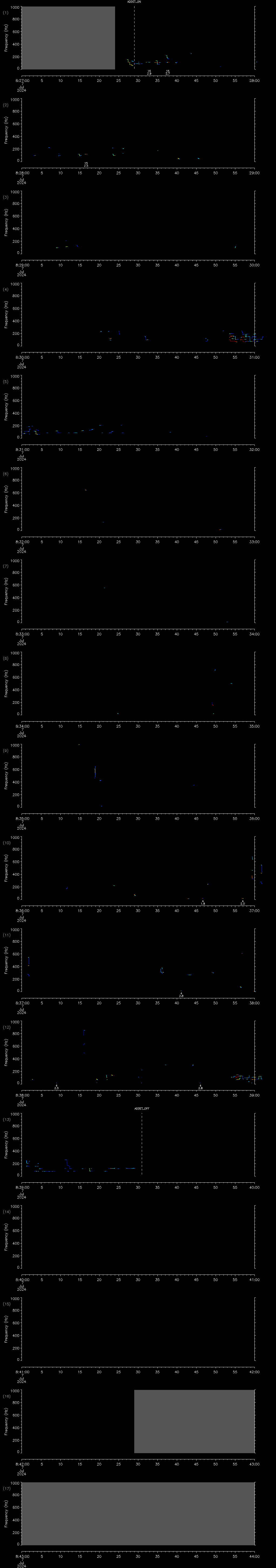 - MUTEON: the hydrophone is muted to assess system noise and to provide a time mark in the audio recording