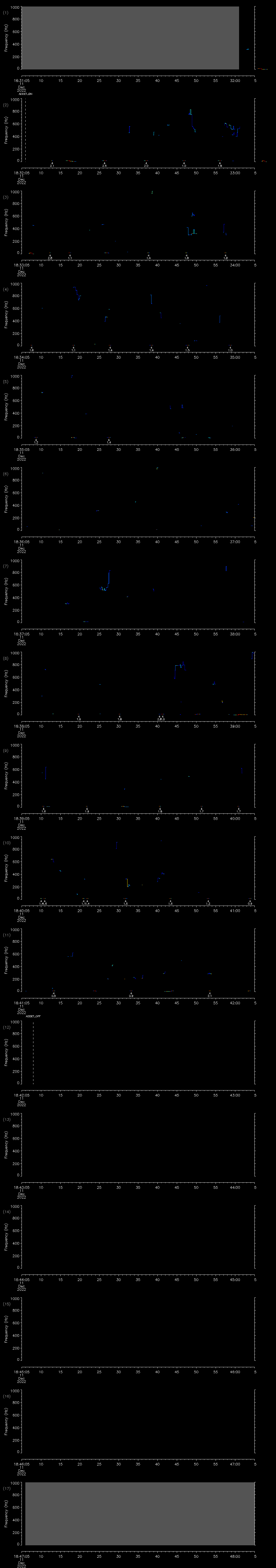 - MUTEON: the hydrophone is muted to assess system noise and to provide a time mark in the audio recording