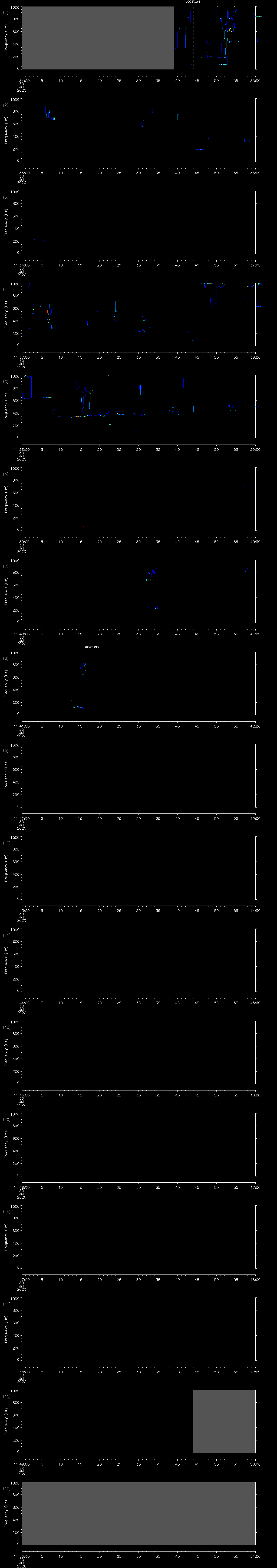 - MUTEON: the hydrophone is muted to assess system noise and to provide a time mark in the audio recording