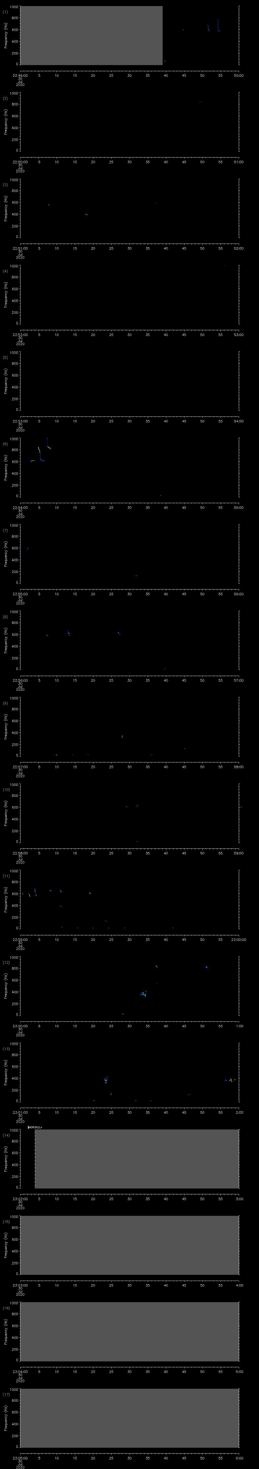 - MUTEON: the hydrophone is muted to assess system noise and to provide a time mark in the audio recording