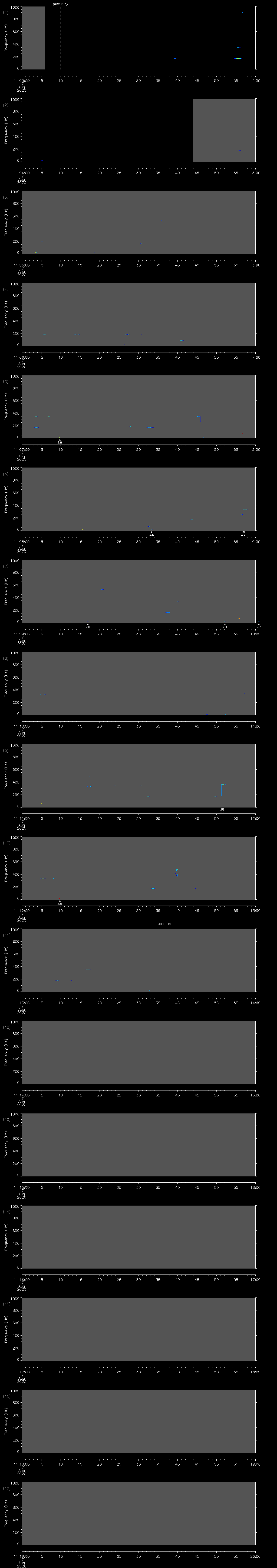 - MUTEON: the hydrophone is muted to assess system noise and to provide a time mark in the audio recording