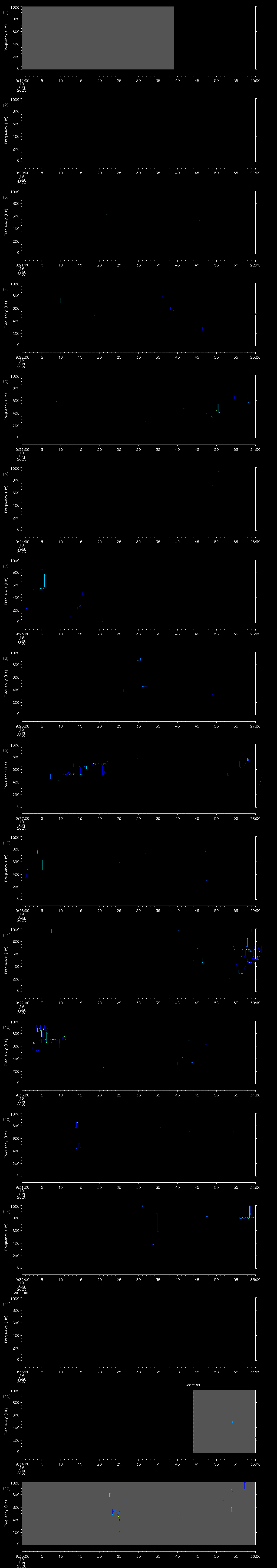 - MUTEON: the hydrophone is muted to assess system noise and to provide a time mark in the audio recording