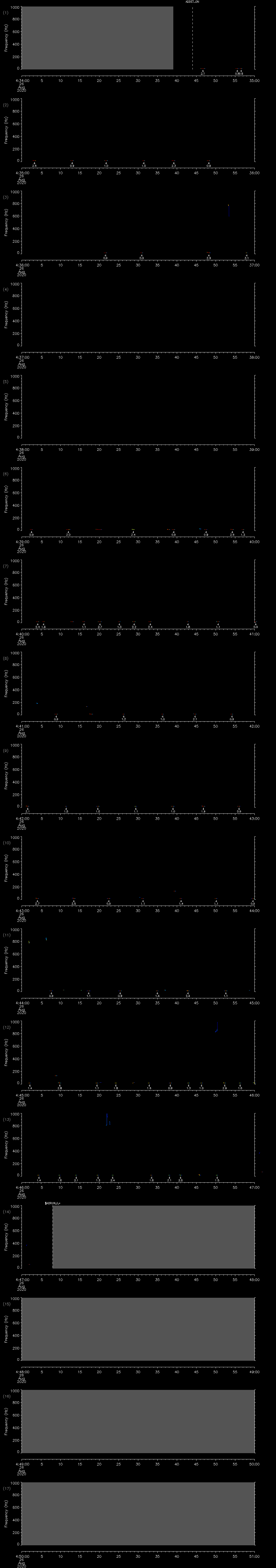 - MUTEON: the hydrophone is muted to assess system noise and to provide a time mark in the audio recording