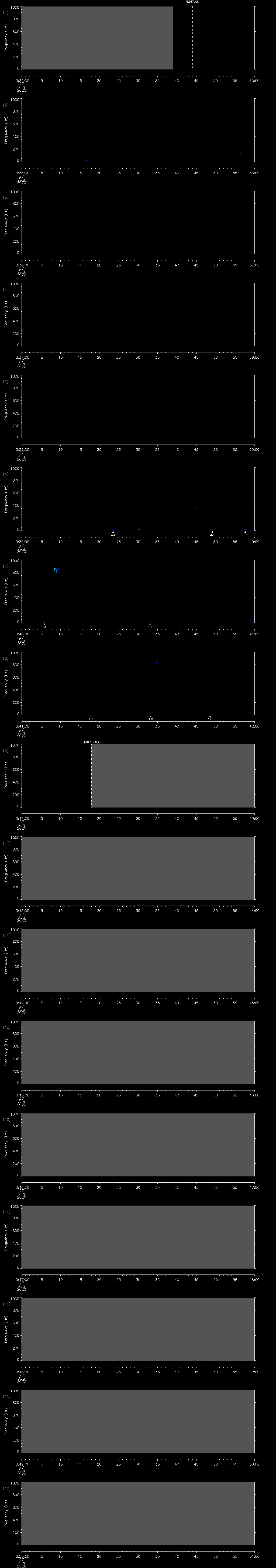 - MUTEON: the hydrophone is muted to assess system noise and to provide a time mark in the audio recording