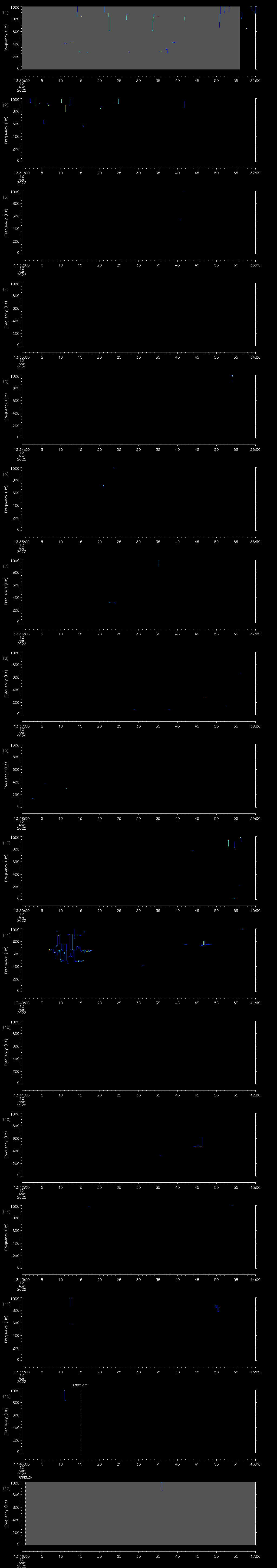 - MUTEON: the hydrophone is muted to assess system noise and to provide a time mark in the audio recording