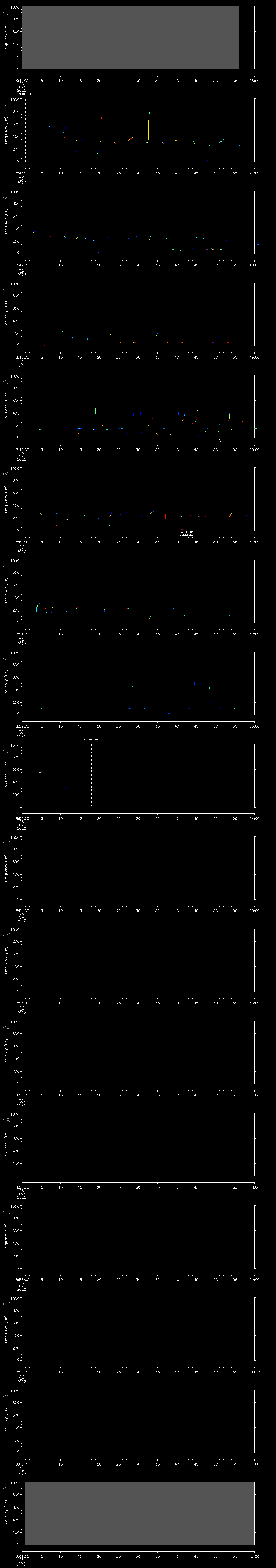 - MUTEON: the hydrophone is muted to assess system noise and to provide a time mark in the audio recording