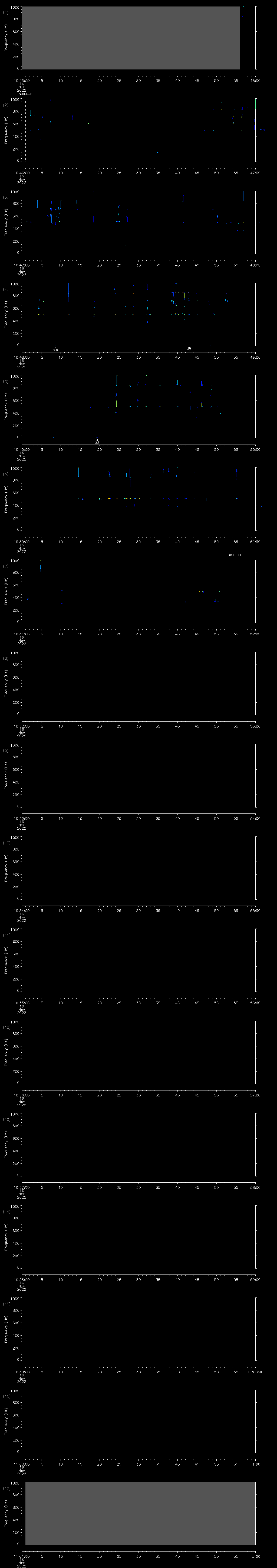 - MUTEON: the hydrophone is muted to assess system noise and to provide a time mark in the audio recording